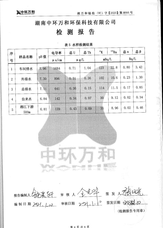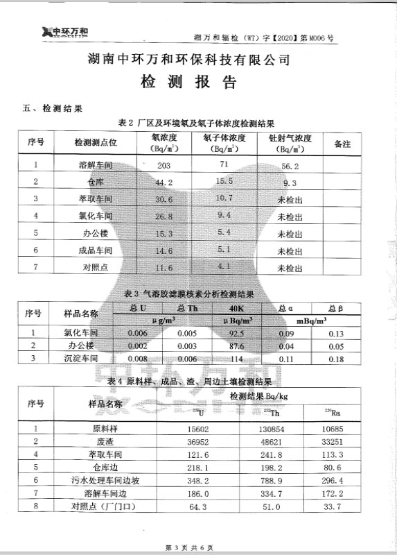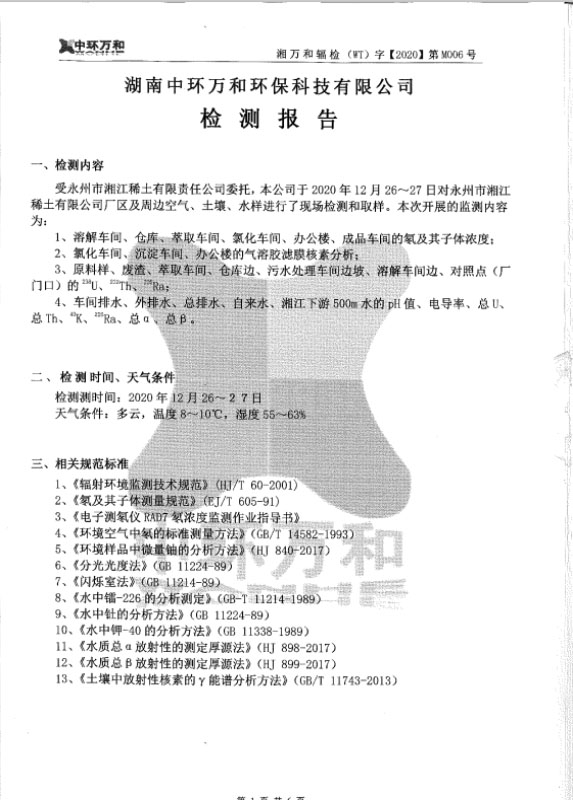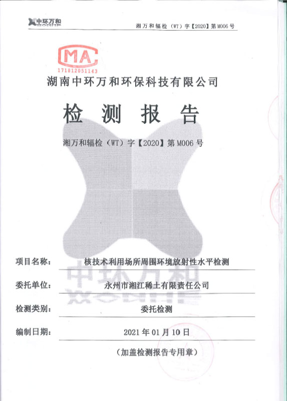 永州市湘江稀土有限責(zé)任公司檢測報告